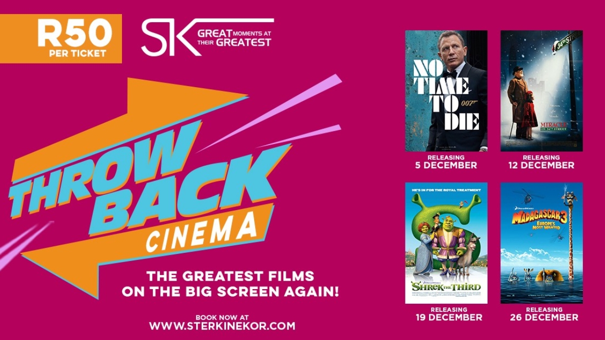 All tickets for December and into January 2026 line-up of Throwback Cinema titles are only R50. Book your tickets now on the new-look SK website or download the new and improved SK App on your smartphone. For news and updates, go to Facebook or Twitter. For all queries, call Ticketline on 0861-Movies (668 437).